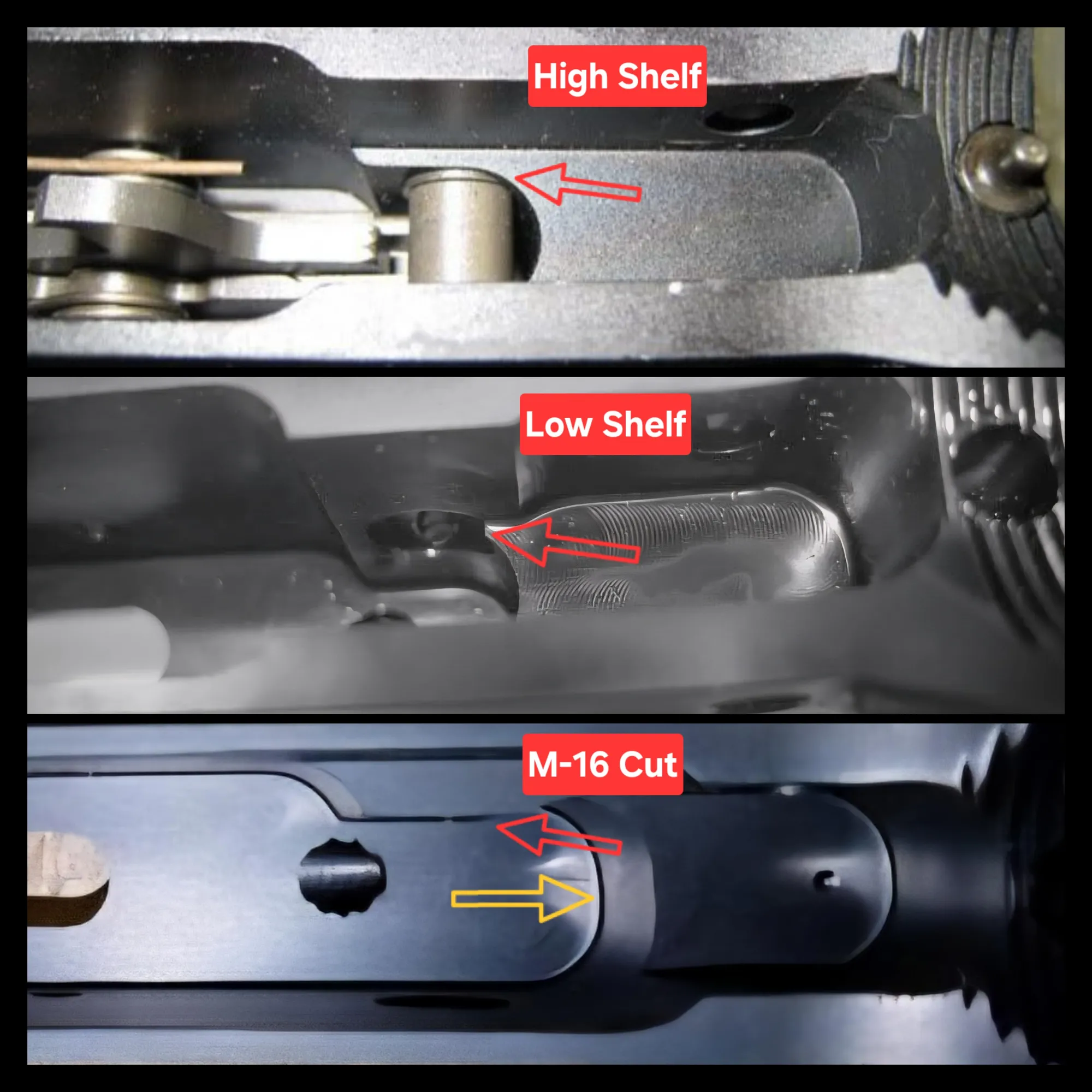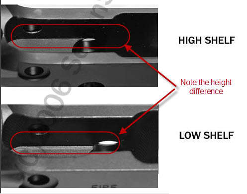 Low shelf lowers will most likely function. The shelf stops above the middle of the selector cylinder area. A M16 cut lower works best as no shelf is present to impede the movement of the lever. A HIGH SHELF RECEIVER WILL NOT WORK AND WILL REQUIRE THE USE OF A DREMEL TO SHAVE BACK AREA (see diagnostic section).